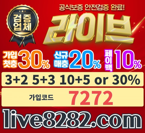 [LIVE] 라이브사이트 | 첫환전까지 무제한 20% | 가입첫충30% 혹은 3+2/5+3/10+5 | 페이백 10% | 토큰게임 | 업계 1등이 허울이 아닙니다~